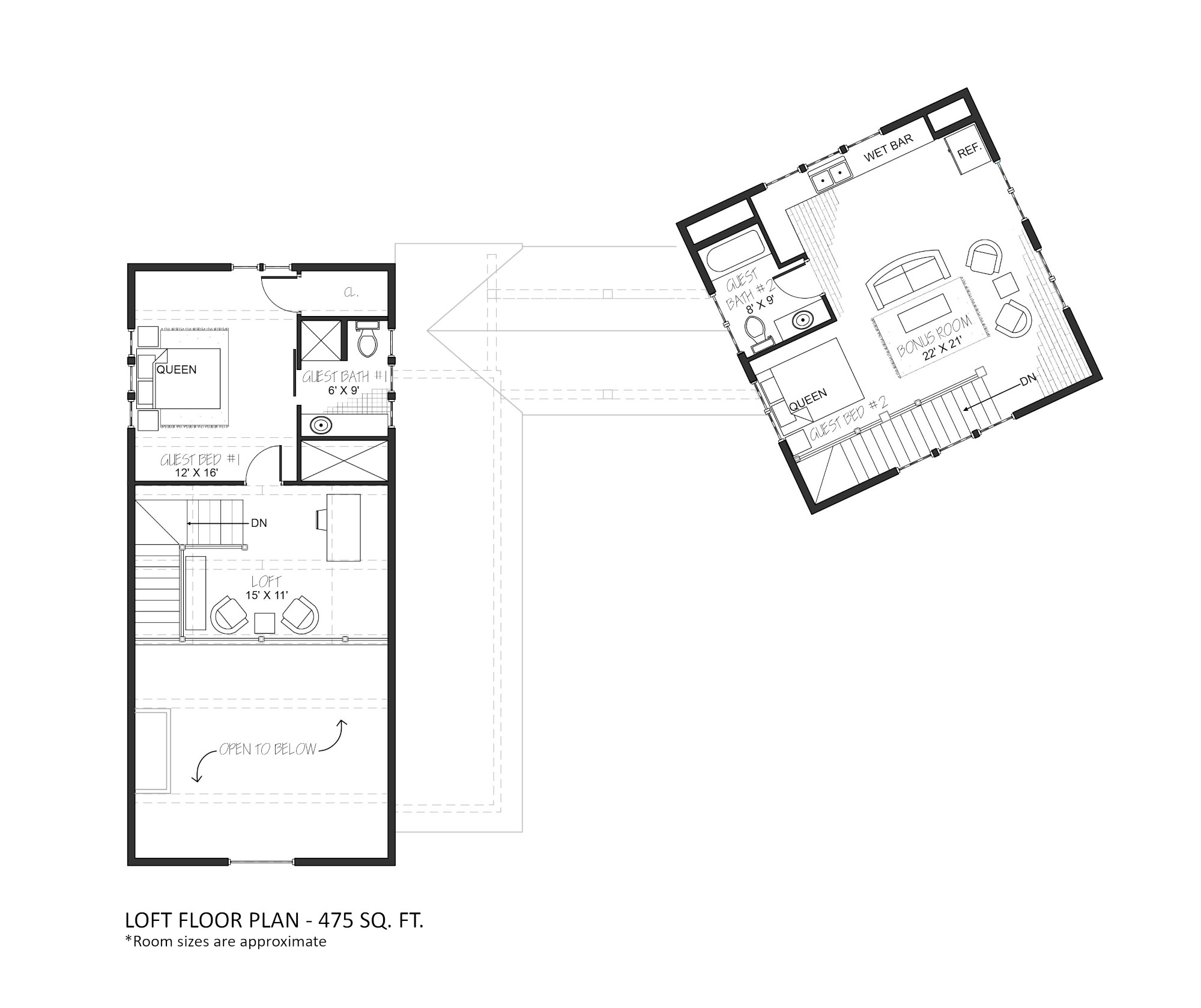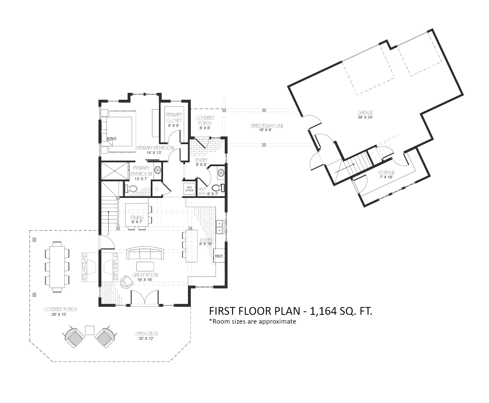 1,164 on the first floor & 475 loft