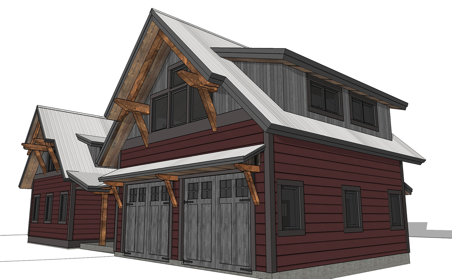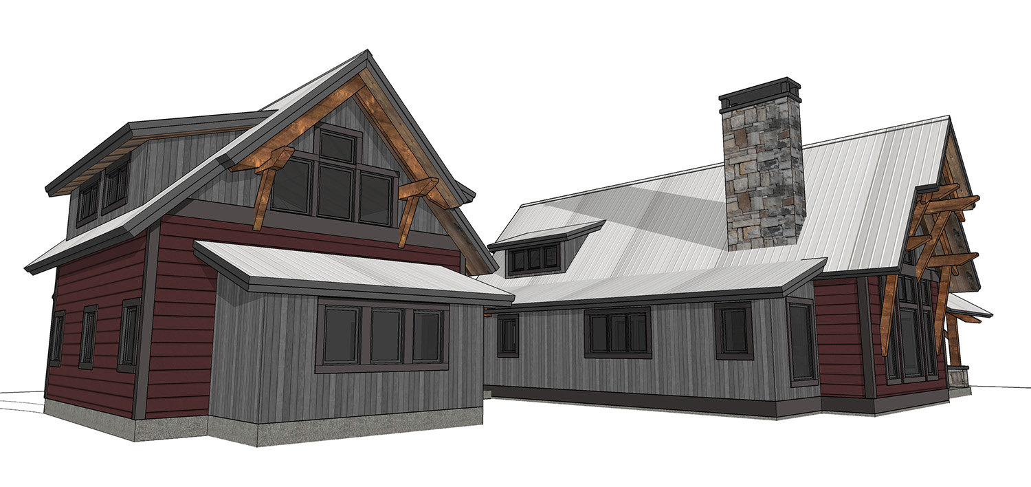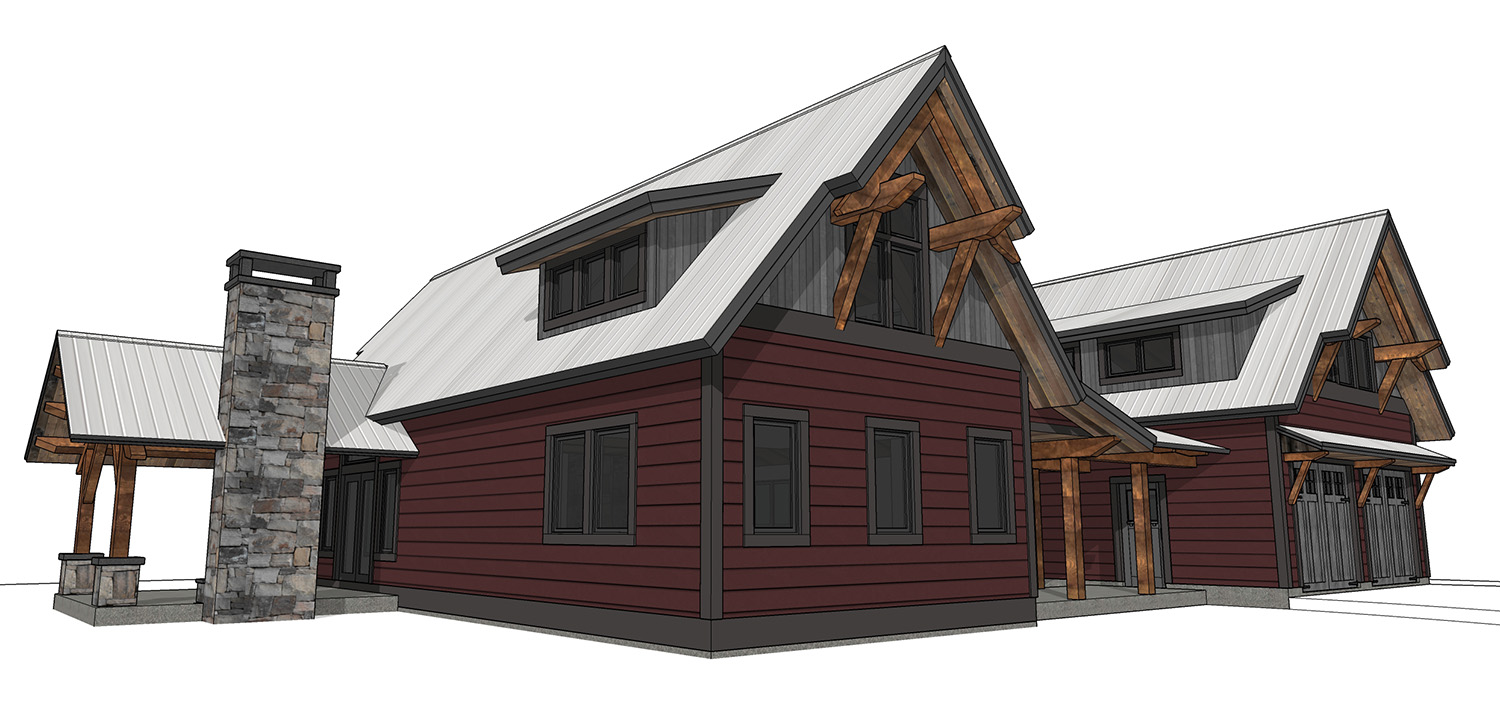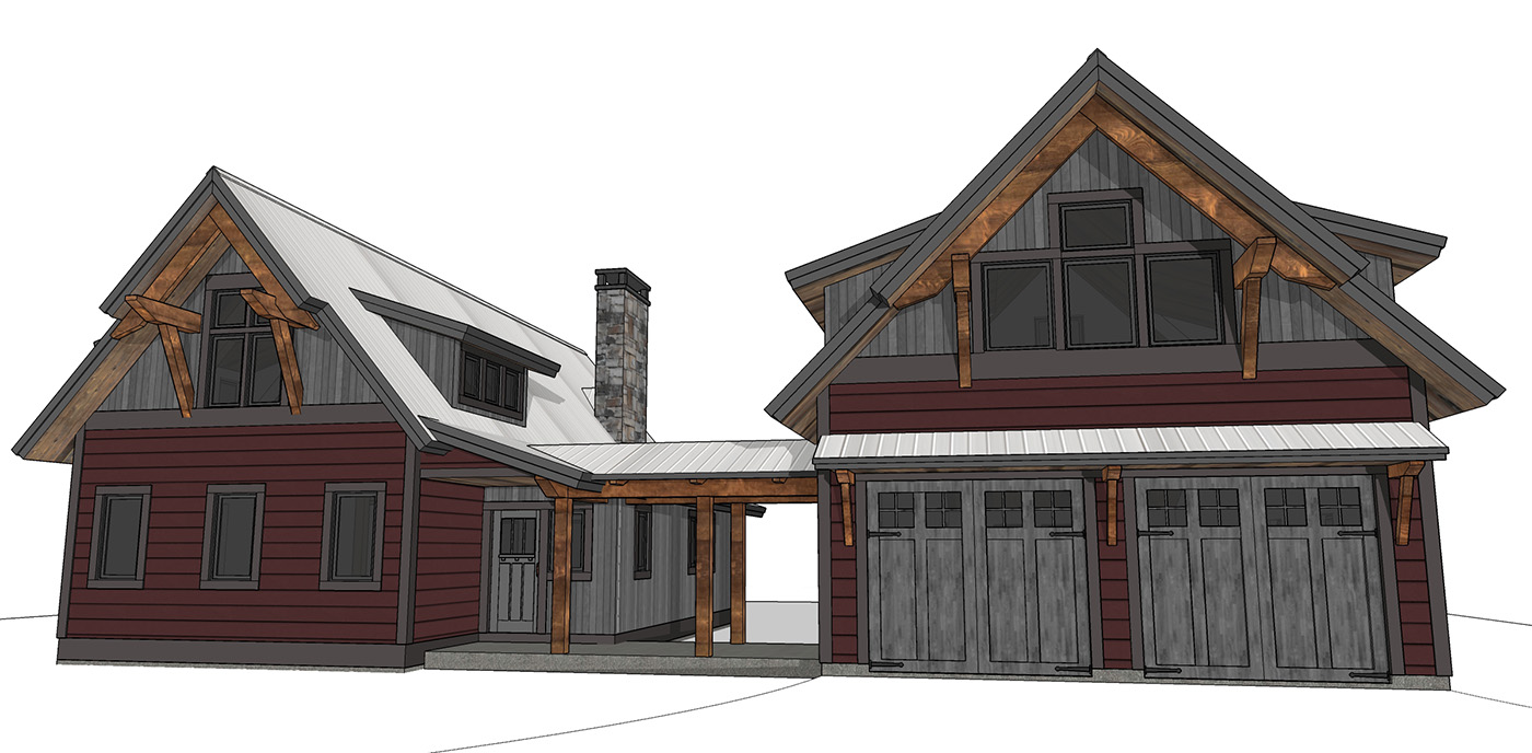 Covered breezeway linking the cabin to a matching garage.