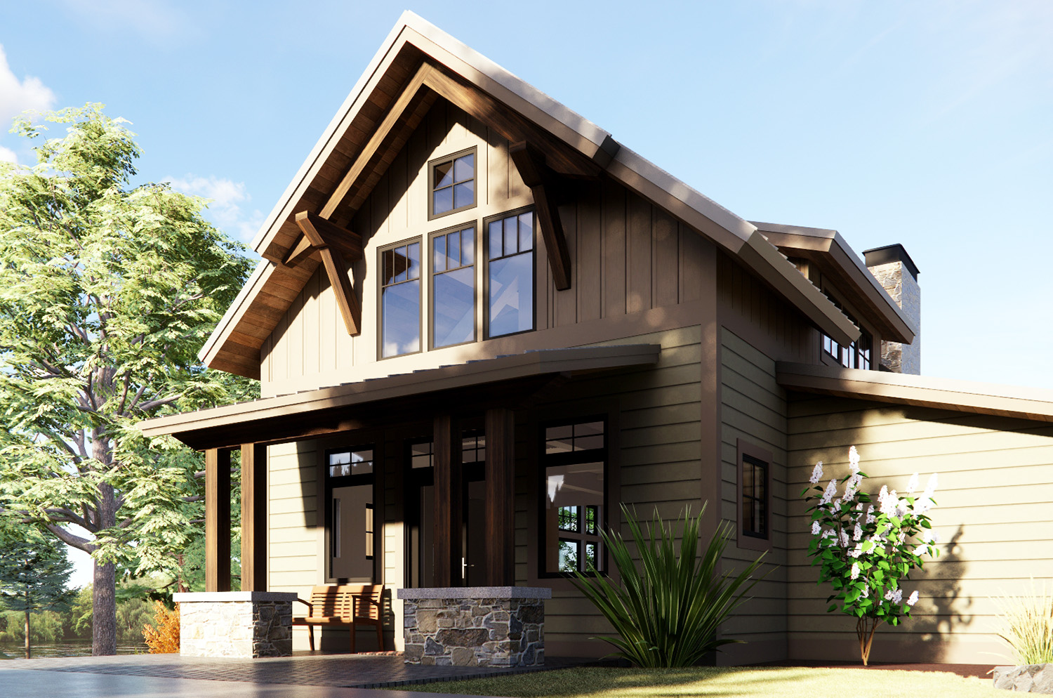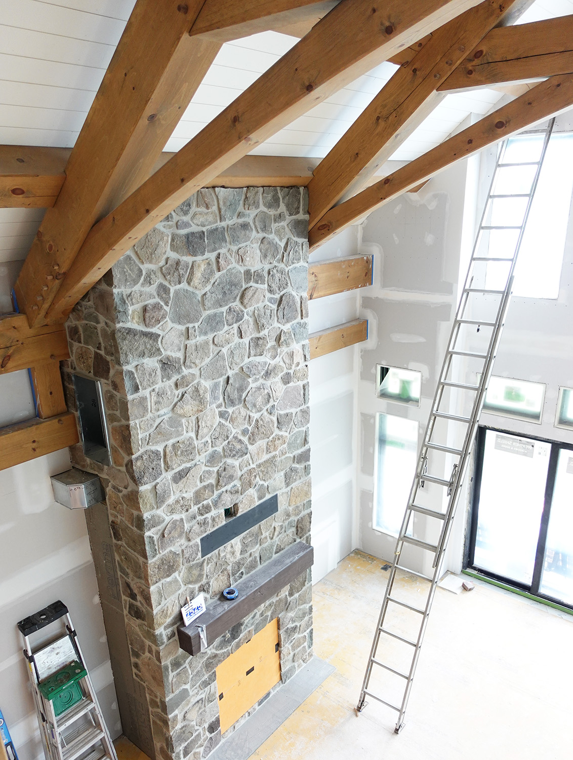 Inspired by one of our previous lake cottage builds, this home on Lake Wallenpaupack is nearing completion. The homeowner used LP Smart Siding for the exterior, Pennsylvania sourced stone for the fireplace & chimney, and white shiplap boards in the ceiling.