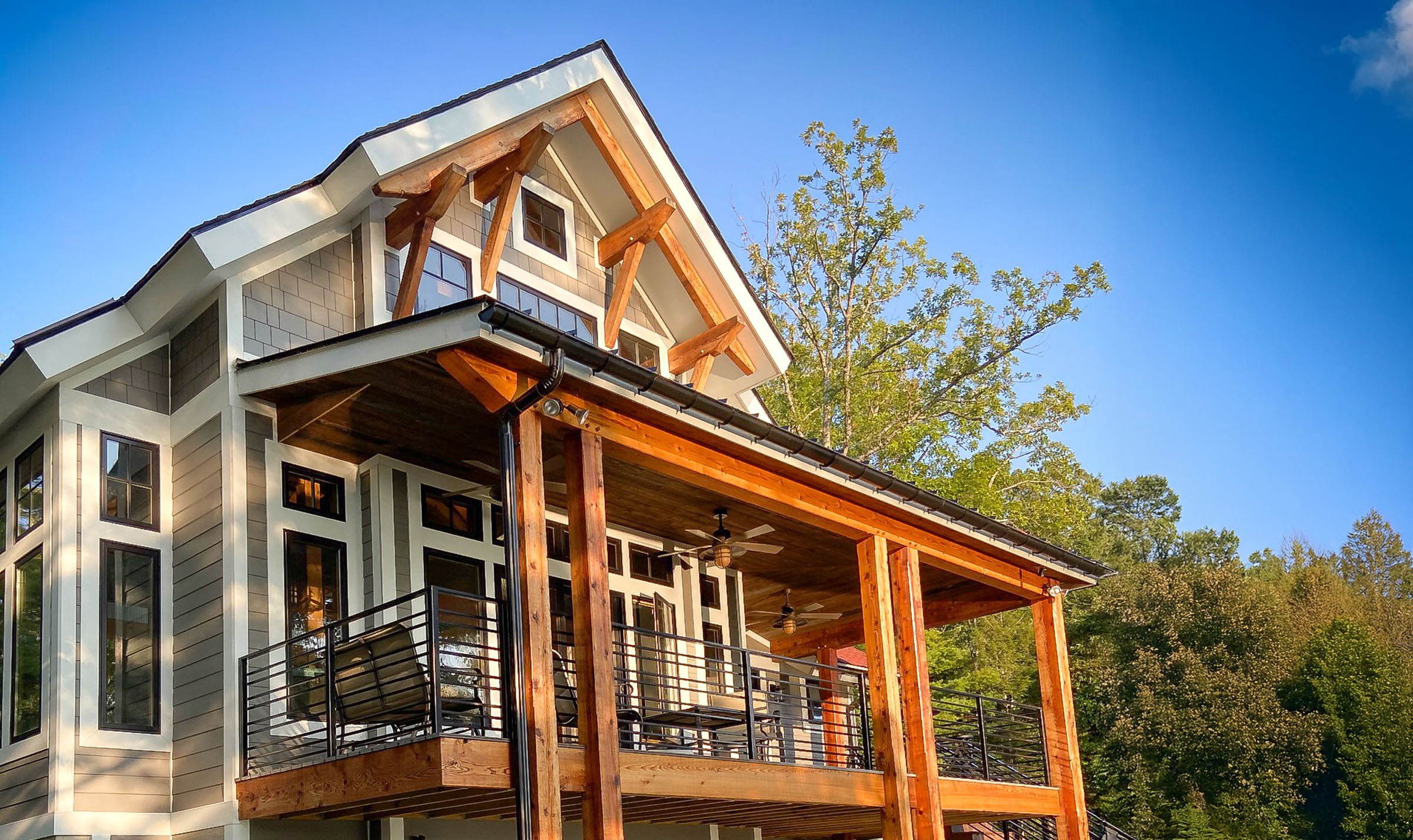Our build in Yankee Lake, New York is complete. Unique locations call for unique designs so we worked closely with our clients in creating this one — called The Lake Cottage. The Lake Cottage is an open concept timber frame home designed to accentuate a big view by placing the dining room, great room, and master suite along the same axis as the large covered porch.