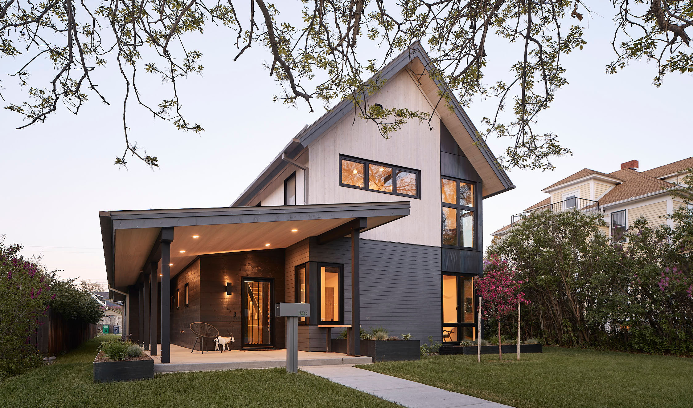 We worked closely with Brian Kempisty to design this home for a narrow lot in downtown Bozeman. The Metro features a street-facing office, primary bedroom on the first floor and an additional two bedrooms on the second floor. A covered timber frame breezeway connects the home to an optional garage.