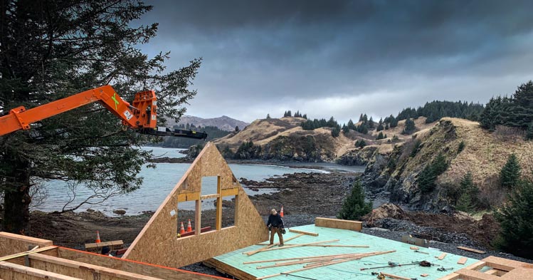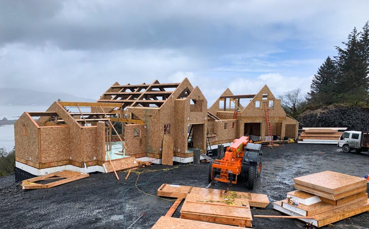 When Cliff Point Estates asked us to be part of their project in Kodiak, Alaska we promptly designed two houses, and prepped our field team for a trip north to install the timber frames and the wall and roof panels.