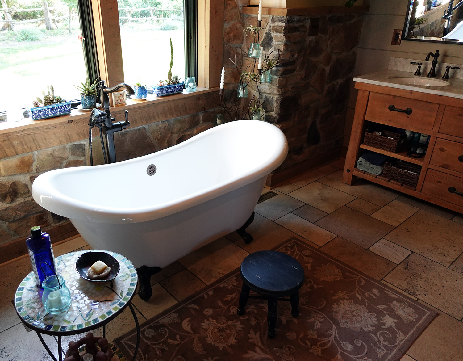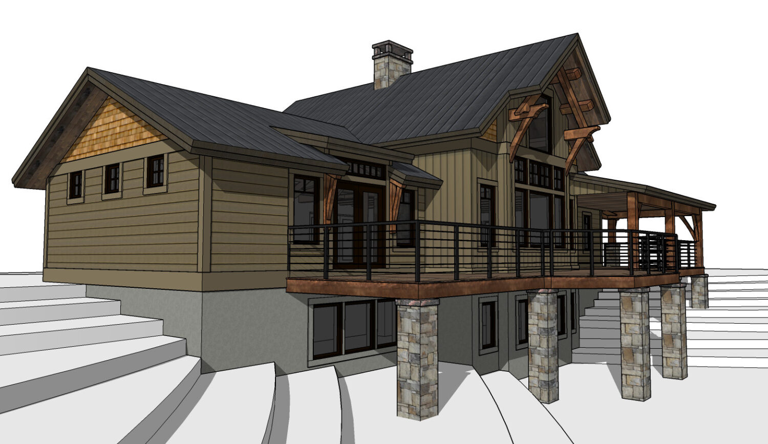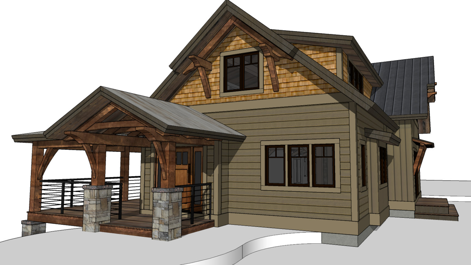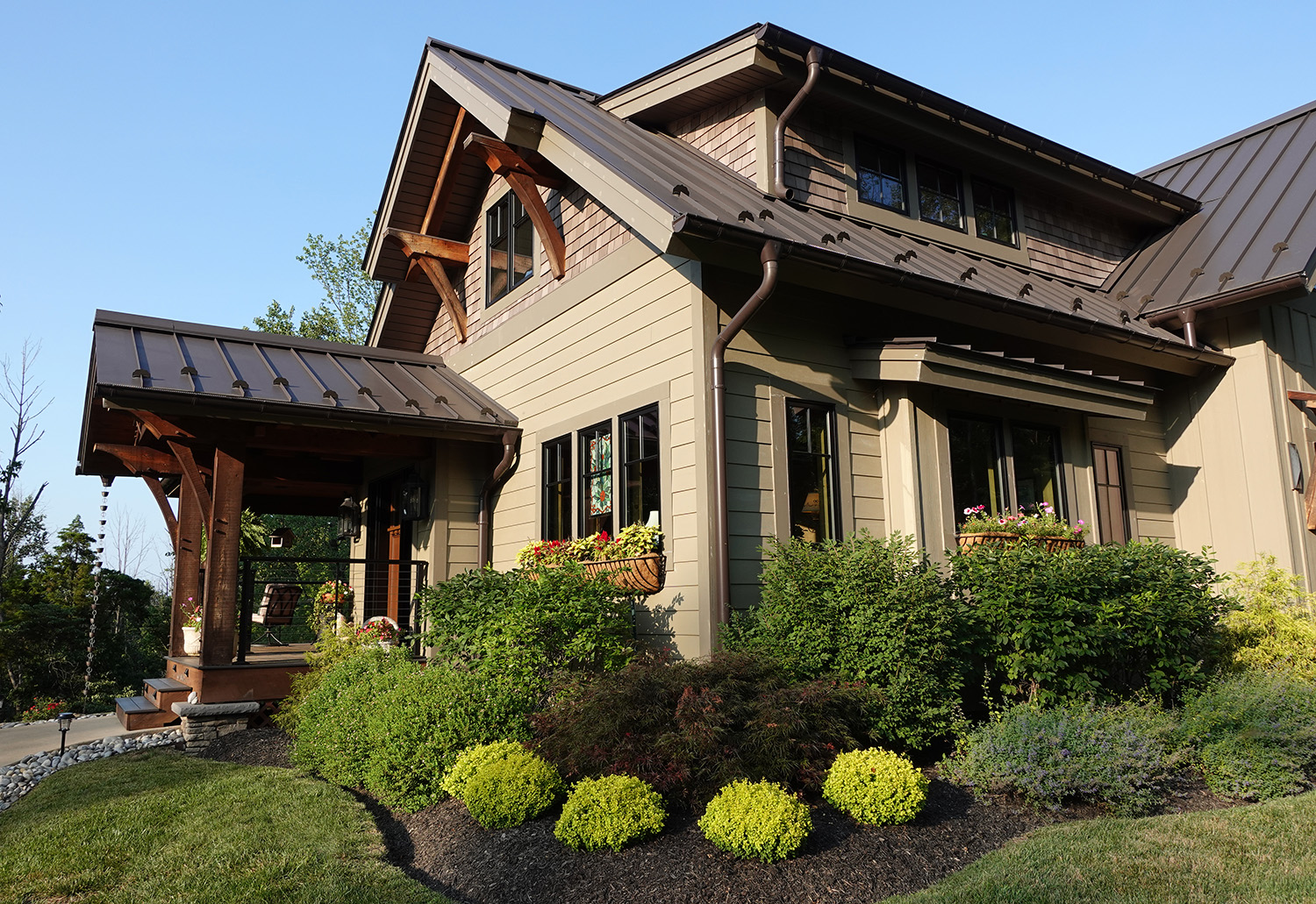 The sloping walkway leading to the entrance and covered porch was done by the owners with stone excavated from the build site.