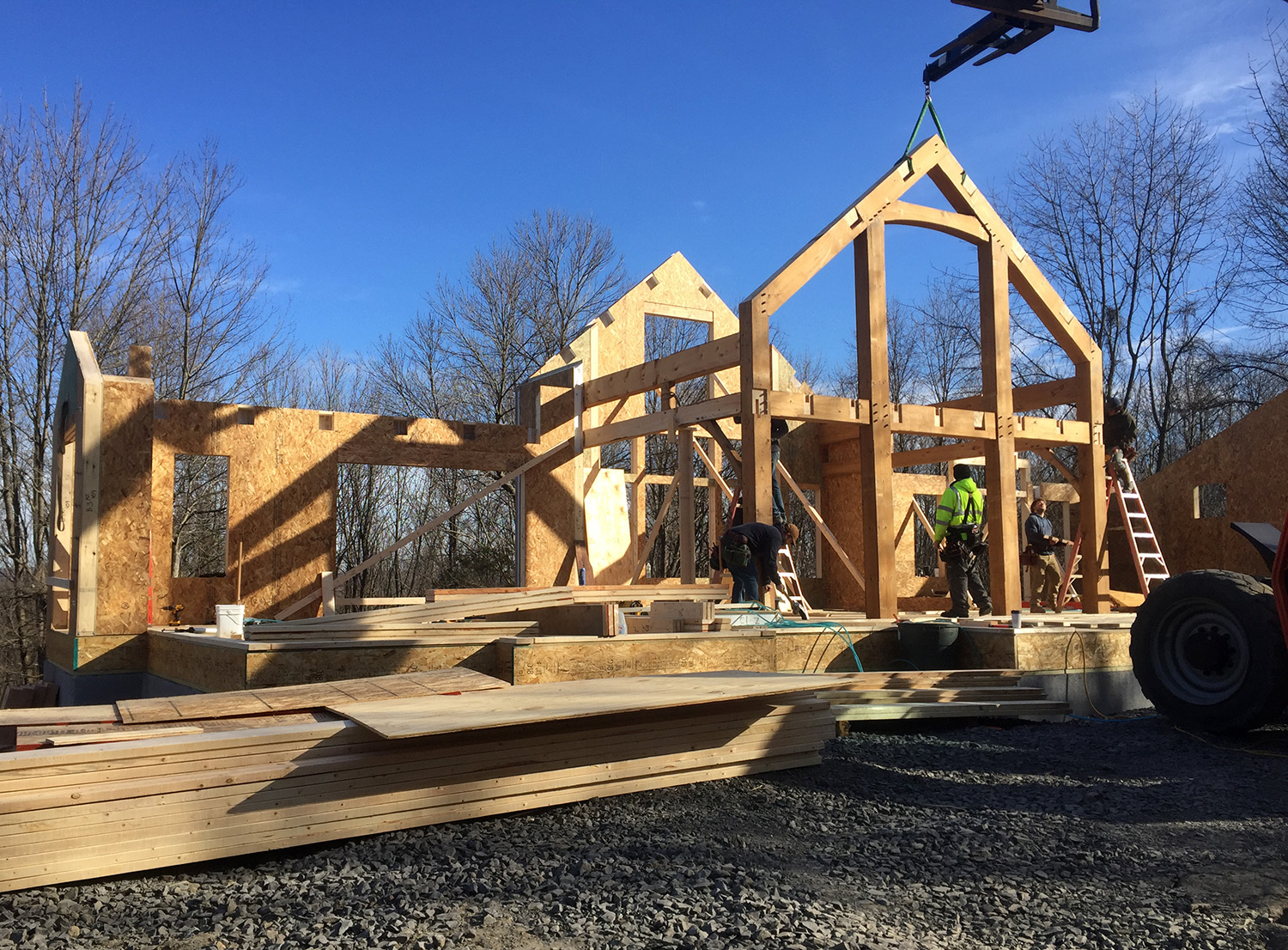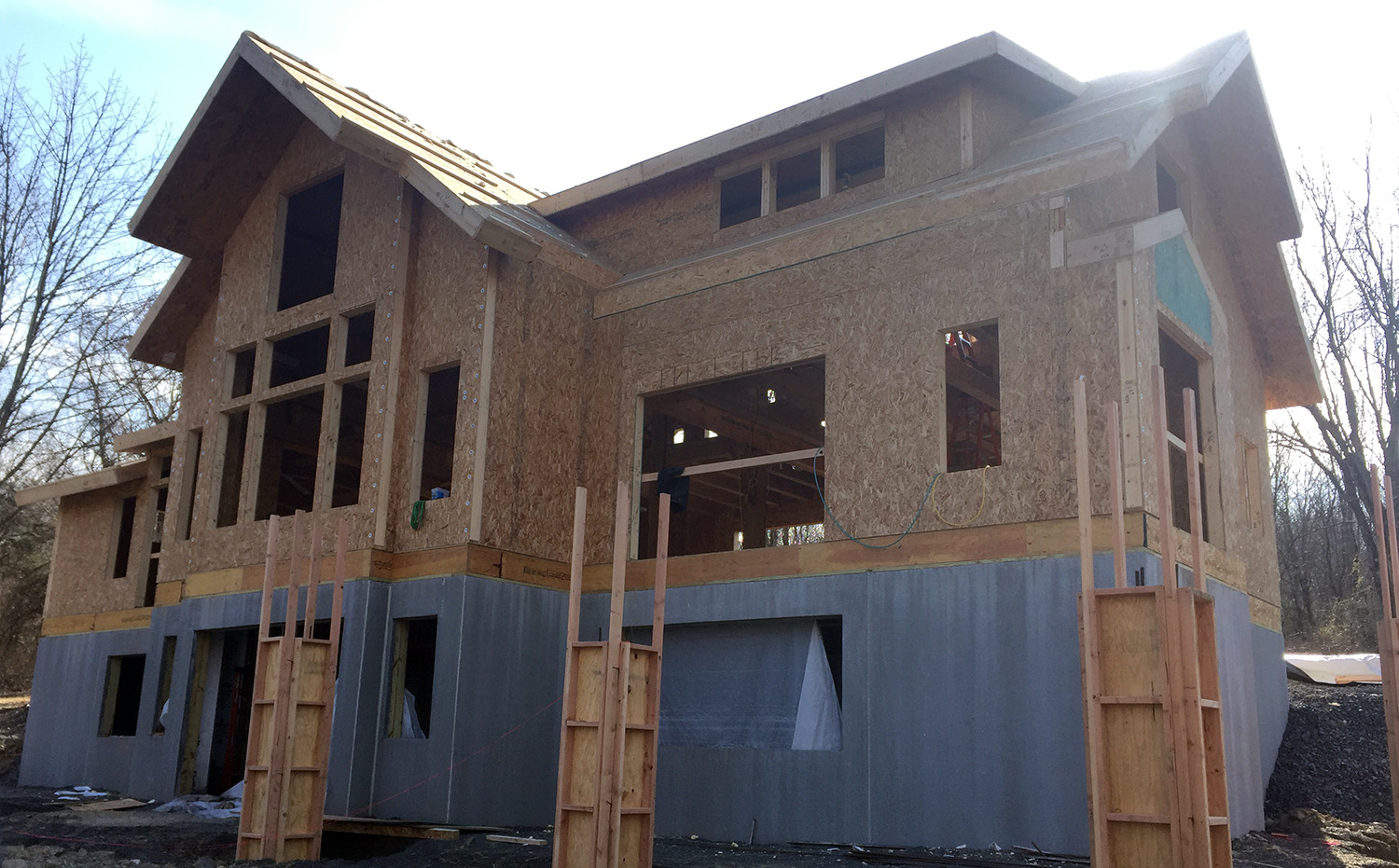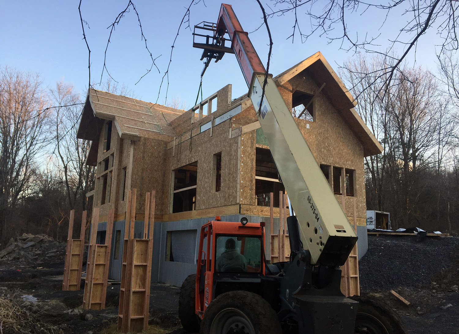 Nestled on a hill above the Delaware river, the owners of this Olive were heavily involved in its construction. They prepped and installed the ceiling boards, built most of the wood furniture & stairs, and put in the gorgeous stone retaining wall along the west side of the home. The results speak for themselves, and the clients are thrilled to be living in their forever home.