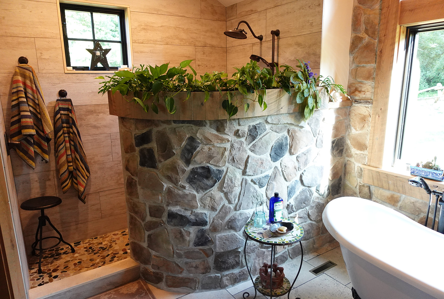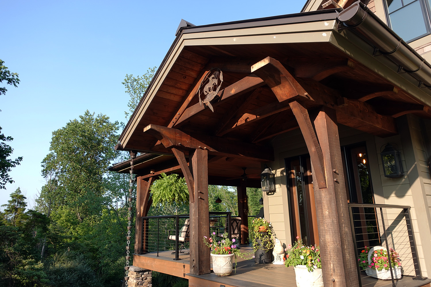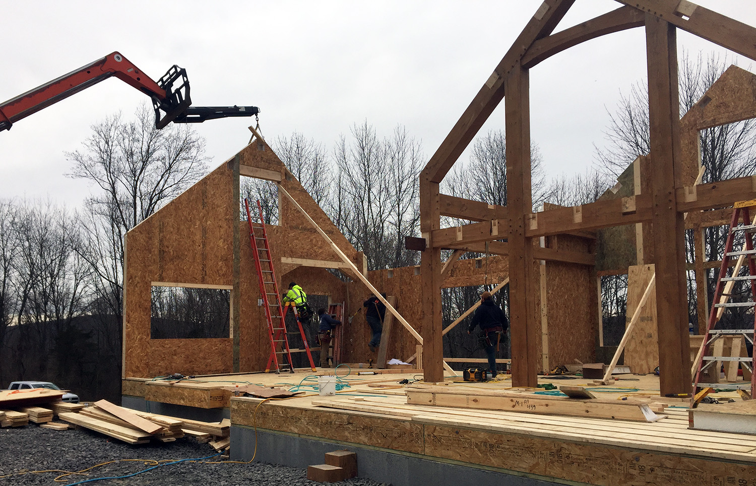 Nestled on a hill above the Delaware river, the owners of this Olive were heavily involved in its construction. They prepped and installed the ceiling boards, built most of the wood furniture & stairs, and put in the gorgeous stone retaining wall along the west side of the home. The results speak for themselves, and the clients are thrilled to be living in their forever home.