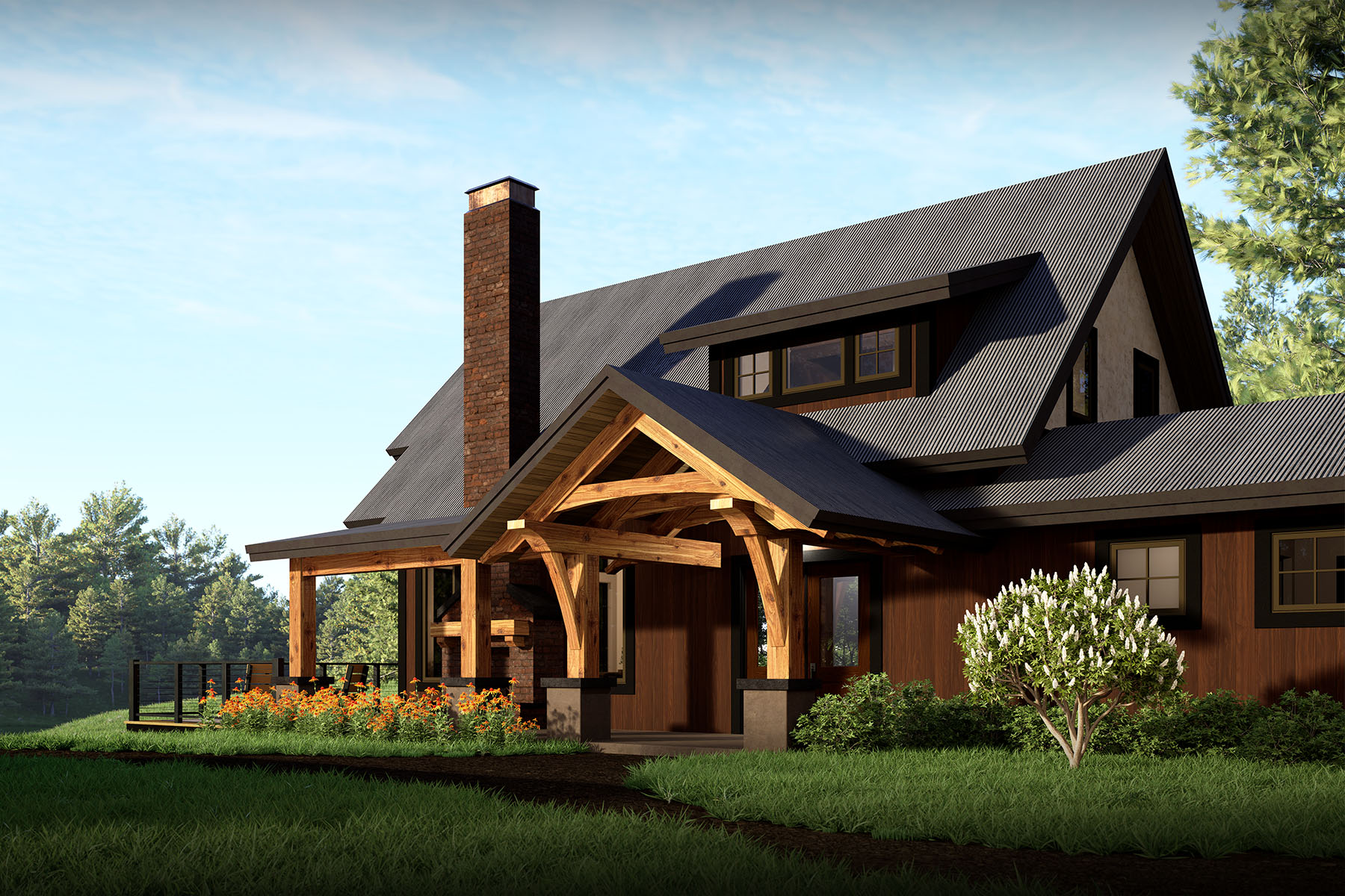 By using our hybrid timber frame building system, we combine the strength and efficiency of structural insulated panels (SIPs) for your walls and roof with exposed, load bearing timbers. These resulting homes are architecturally distinct, energy efficient, and sustainable. They embody our standard โ Artful, Rugged, Green.