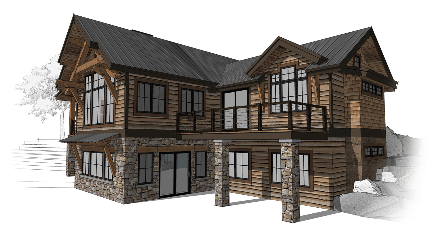 Our timber frame services include home design, engineering, production and assembly of your timbers and SIPs (Structural Insulated Panels) anywhere in North America